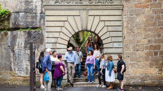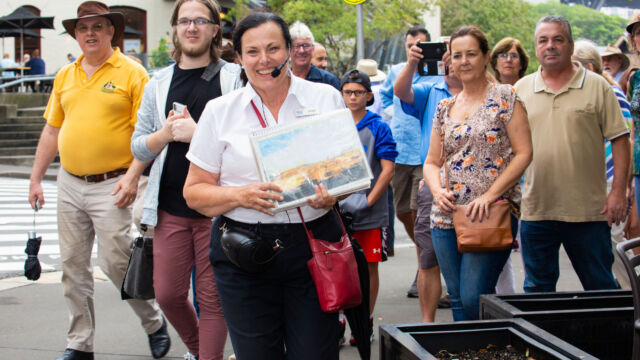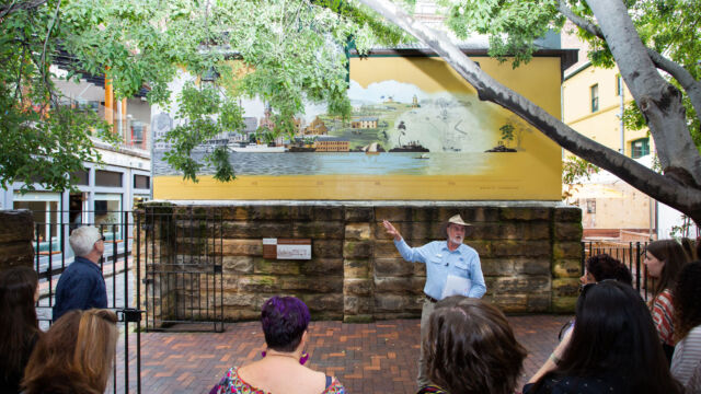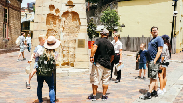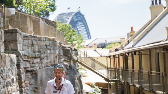 Join us at The Rocks Walking Tours office located at Shop 5 – Clocktower Square, Corner of Argyle & Harrington Streets, The Rocks, for a 90 minute walk through Sydney’s historical precinct. There is no better way to get up close and personal with the living history and heritage of Sydney than on foot. Hear lively tales from a colorful past while enjoying the ambience of a vibrant present. Hear how the First Fleet brought the soldiers and convicts arriving as they did into Sydney Cove in 1788 thus impacting forever on the local Indigenous people’s way of life. Stories unfold with many rich accounts of the antics of sailors, larrikins and rogues as they roamed the rugged Rocks district. Still to be seen today are the storehouses, public and working class cottages from the time when this place took on all of the characteristics of the dockside. There is approximately 1.2 miles of walking covered at a leisurely pace.