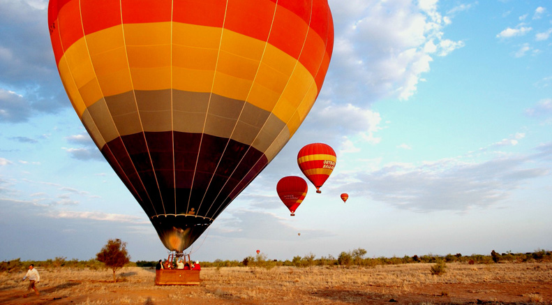 Your Outback ballooning adventure begins pre-dawn, with the balloons inflation as the sun lights up the rugged MacDonnell Ranges. While floating gently in the air you will appreciate the vast remoeteness, scenery and wildlife of the Australian outback. Wildlife, particularly big red kangaroos are seen nearly every day as your balloon crosses spinifex grasses, mulga scrub and cattle stations. This Alice Springs tour includes return transfers and a glass of sparkling wine.