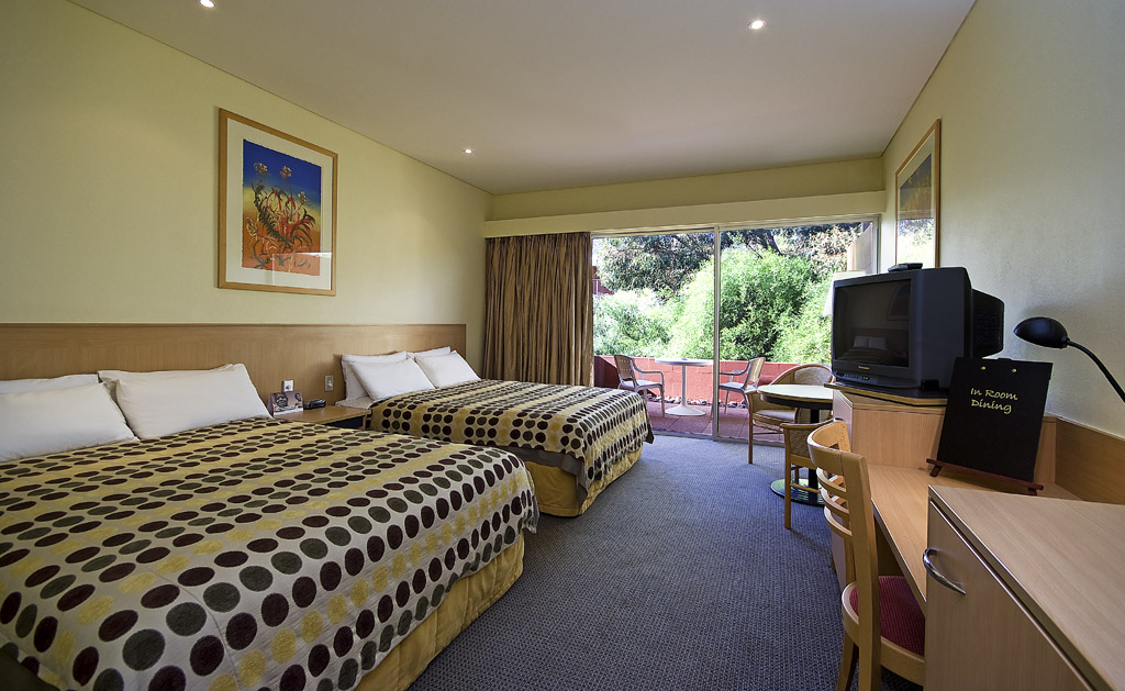 Accommodation options are diverse from deluxe rock view rooms to shady poolside rooms all located under a canopy of towering gum trees and garden beds dotted with native shrubs and flowers.