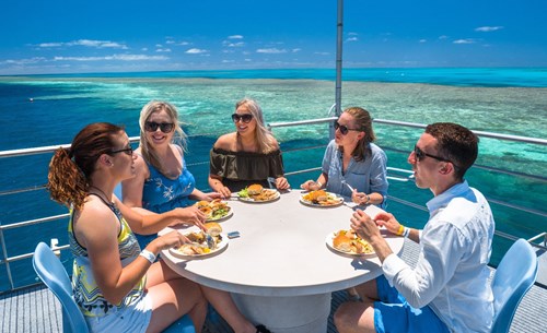 At 7.45am your will board your vessel to enjoy a full day Great Barrier Reef Adventure. Cruise through the Whitsunday Islands enroute to Hardy Reef where you spend over 3 hours on the reef pontoon. The pontoon offers undercover seating and tables, sun decks, freshwater showers and changing rooms. There are a range of activities available including an underwater viewing chamber, semi-submersible rides for coral viewing and full use of snorkelling equipment and wetsuits, as well as presentations by reef experts. Optional activities are also available including onboard massage service, certified and introductory scuba diving and helicopter scenic flights (all optional activities at own expense). Enjoy lunch on board. Cruise concludes at approximately 6.10pm.