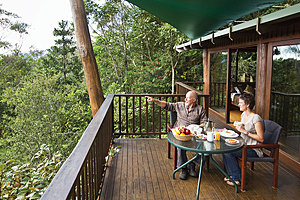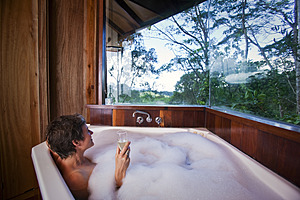 Rose Gums is advanced ecotourism accredited with 93 hectares of tropical rainforest bordering the World Heritage Wooroonooran National Park. The luxury pole and timber treehouses are totally private and feature large spa baths, cozy fireplaces and verandas with amazing mountain views. Explore pristine rainforest streams and miles of walking tracks. There is abundant wildlife with over 160 species recorded. Guided bird watching is also available. This cool tropical mountain retreat offers peace and relaxation. The treehouses are ideal for the romantic getaway or the family vacation. Jon & Peta Nott are your genuine and friendly hosts at this family owned property.
