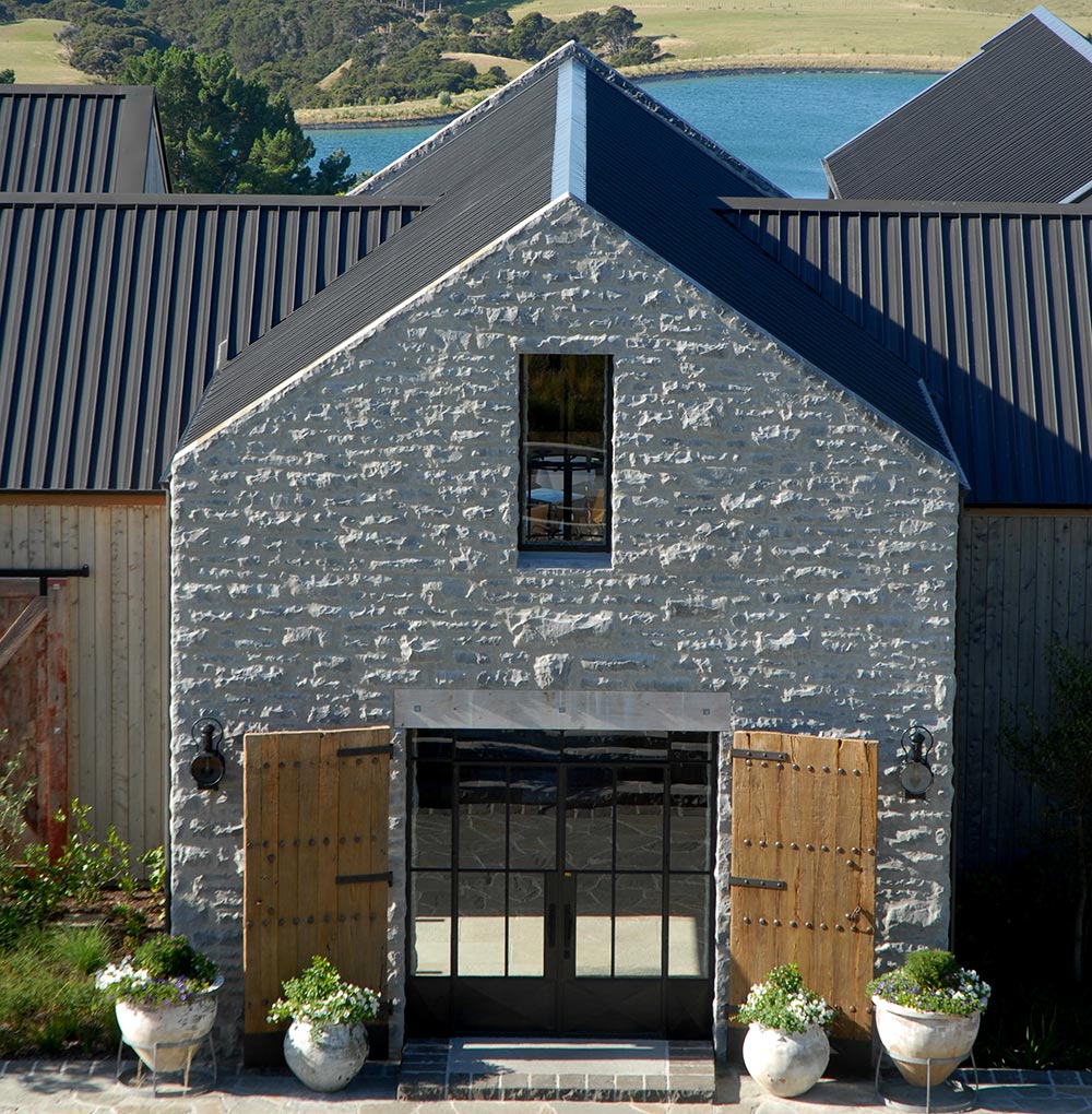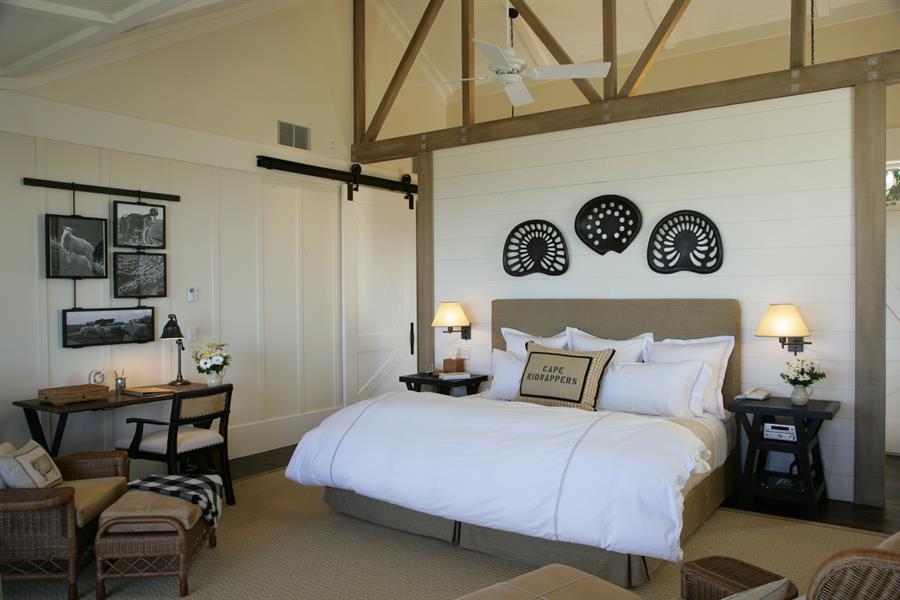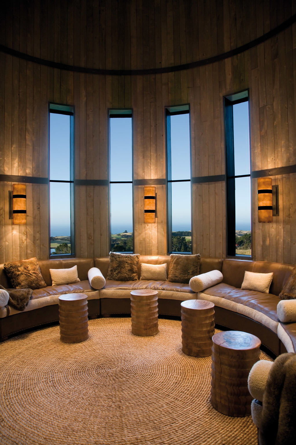 Located on 6,000 rolling acres of gorgeous farm land in Hawke’s Bay, The Farm at Cape Kidnappers is the perfect setting for honeymoons and romantic vacations. The Farm affords spectacular 180-degree views of the Pacific Ocean. The cluster of luxury lodge buildings suggest a working farm with the buildings combining rustic and textured materials with comfortable modern furniture.